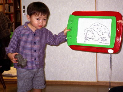 「くぅ」と「だーだ」力斗は創作意欲が高いので、絵を描いてもすぐに消したがります。不満そうな顔は、「写真撮るから消さないで!」と言われたため。 ちなみに実物は↓ ![]() ![]() |