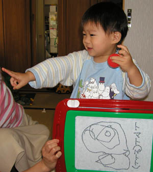 ぞうさん自信作らしい。この写真を見ても、本人は「ぞうしゃん!」と言う。 |