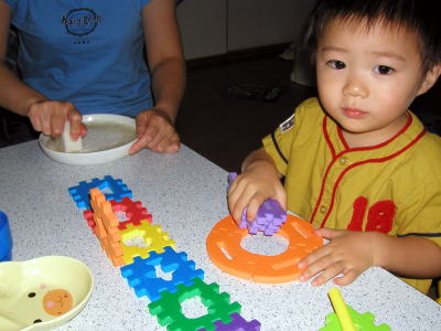 おかあさんがダイコンおろしをはじめたら、力斗もはじめた。